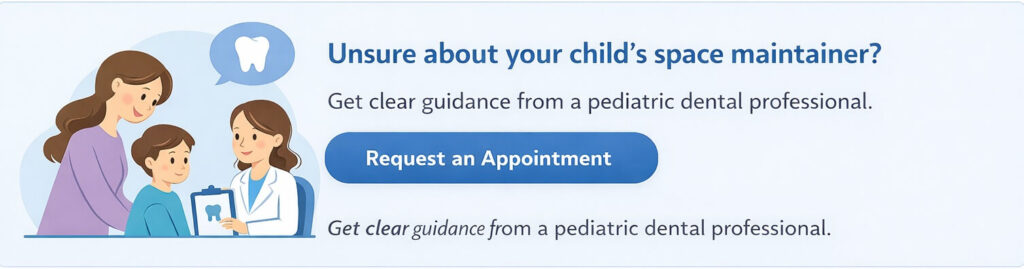 When a space maintainer is damaged or removed too early, nearby teeth may shift into the open space, increasing the risk of Tooth Misalignment in Children as permanent teeth begin to erupt.